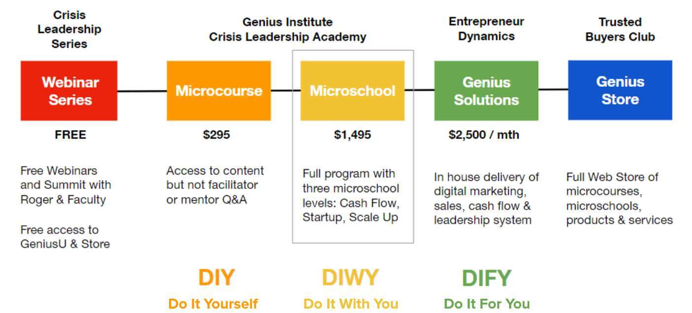 The Crisis Leadership Academy is a four week Microschool to train freelancers, startups and large enterprises to pivot their business to digital products and revenues. We are taking our best accelerator programs, iLab and Wealth Dynamics Masters, and bringing them online on GeniusU for the first time.